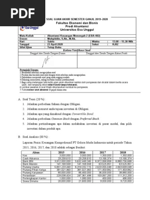 Akuntansi Keuangan Menengah Ii Soal Uts Pdf Txt from html.pdfcookie.com 1 agustus 2012 210n30 pembelian rp 160000000 hutang rp 160000000. Guru sd smp sma contoh soal akuntansi keuangan menengah 2 dan jawabannya. Contoh soal persamaan dasar akuntansi dan laporan keuangan. Obligasi akan jatuh tempo dalam waktu 5 tahun dengan coupon rate sebesar 11% per tahun, pada saat dijual tingkat suku bunga pasar sebesar 12% per tahun. Silabus akuntansi keuangan 2 ocw. Causas del lesbianismo november 2019 26. Soal ujian ut universitas terbuka akuntansi disertai kunci. More documents from sega vanessa agnes jawaban soal akuntansi keuangan 2 january 2021 0.